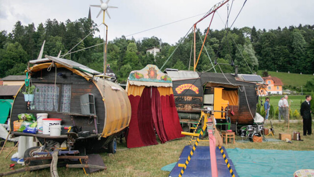 Pri nas te dni gostimo Potujoči cirkus Soluna! So nenavadna druščina, ki pritegne pozornost kjerkoli se pojavi. Njihovo življenje je še vedno ujeto v tirnice časov, ki so za nas že davno minili. Živijo od prispevkov, ki jim jih lahko namenite tudi vi!